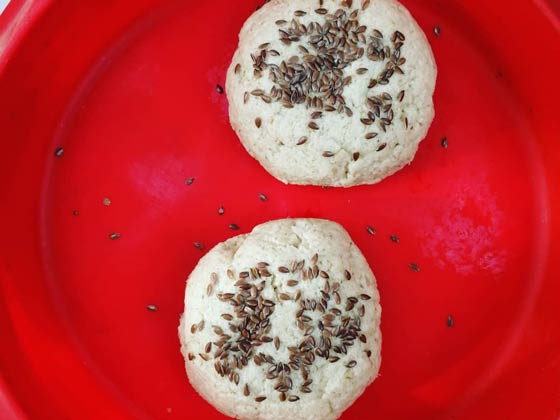 A fentieket összegyurmázzuk, kettéválssztjuk, zsemlékké tapizgatjuk - és 175 fokon 30 percig sütjük.